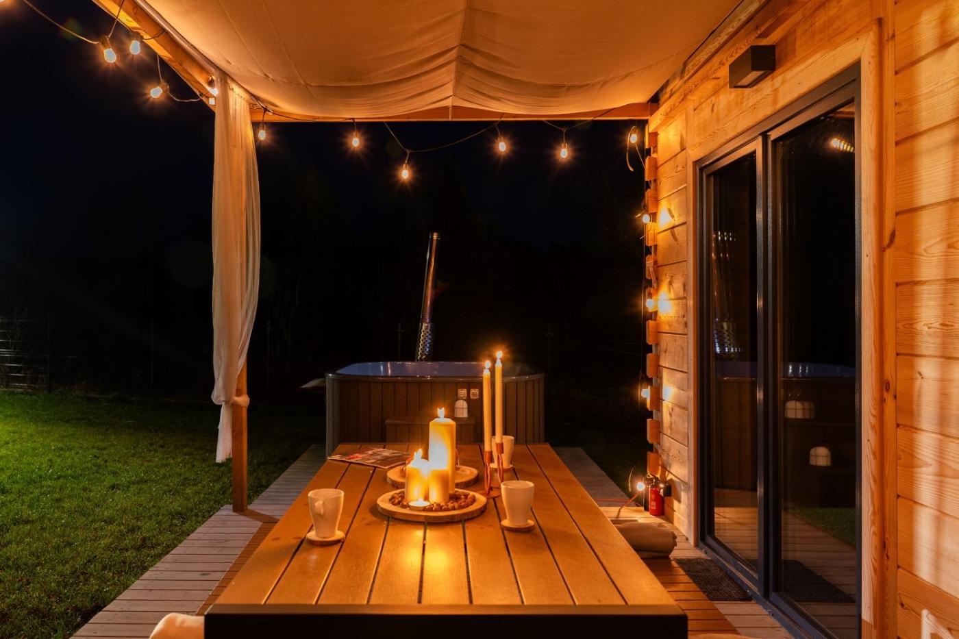 Dom wakacyjny. This holiday home boasts a hot tub, spa bath and sauna. This air-conditioned holiday home consists of 1 living room, 2 separate bedrooms and 1 bathroom with a walk-in shower. Guests will find a stovetop, a refrigerator, a dishwasher and kitchenware in the kitchen. The holiday home also offers a barbecue. Featuring a terrace with garden views, this holiday home also provides a washing machine and a flat-screen TV with streaming services. The unit offers 5 beds. Dom wakacyjny - 6 osobowy. Powierzchnia pokoju ok.: 60 mkw. ;